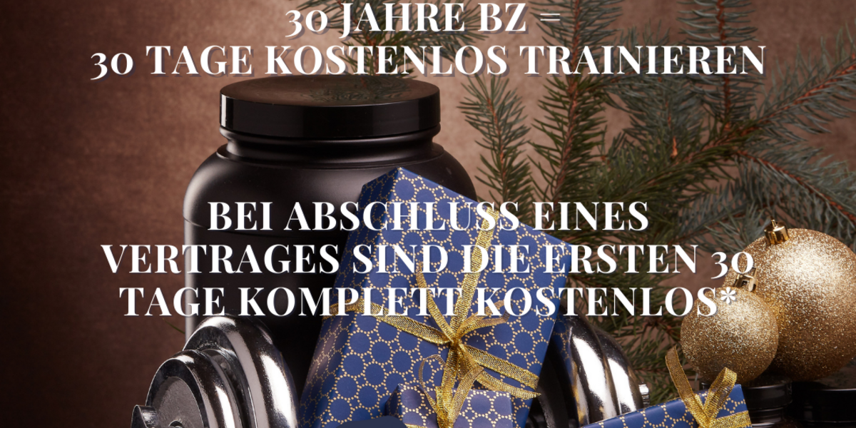 Der perfekte Start ist Jetzt! Wieso auch auf die Neujahresvorsätze warten, wenn Sie auch jetzt schon loslegen können mit Ihrer Fitness-Routine. In dieser Woche bekommen Sie bei Abschluss eines BZ Vertrages, egal welcher Tarif, Ihre ersten 30 Tage geschenkt. Schalten Sie vom Alltag ab! Trainieren Sie in allen Kursen oder auf der Trainingsfläche und wärmen Sie sich anschließend in der Sauna. So macht die Adventszeit spaß!