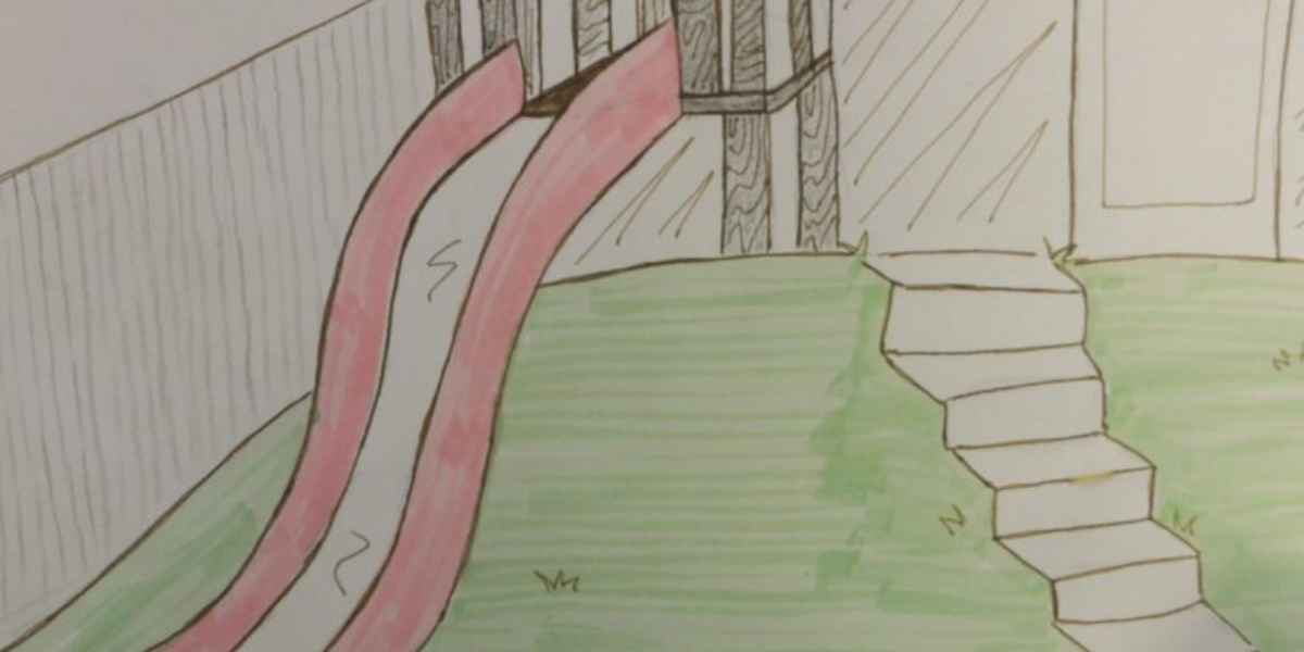 Das Projekt der Sportkita Freiberg ist ein gepflasterter Weg für den Hang zur Rutsche.