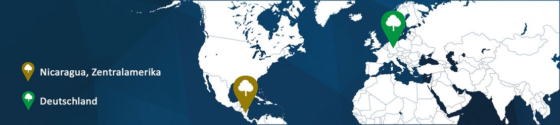 Der neue Wald, den wir mit Ihrer Unterstützung entstehen lassen, wächst auf den Flächen zweier Kleinbauern im Norden Nicaraguas. Zusätzlich bemühen wir uns auch um weitere Baumflächen in Deutschland, die mit neuen Bäumen bestellt werden. So können auch wir unseren Teil dazu beitragen, nicht nur international, sondern auch lokal den Baumbestand zu sichern und so langfristig die Wälder als Wasserspeicher, CO₂-Speicher, Rohstoffgeber, Erholungsorte und als Heimat vieler Arten zu schützen.